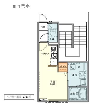 | 専有面積 | 23.68m2 | バルコニー | - |