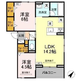間取詳細 | 洋室 4.5帖 洋室 6帖 LDK 14.2帖 |
